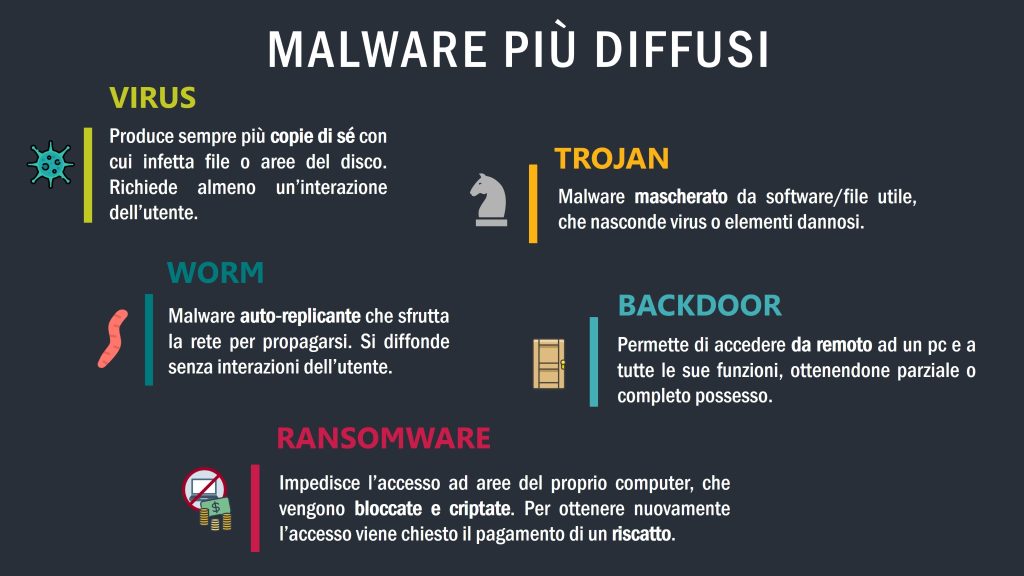 - Non aprire MAI link strani o scaricare file sospetti (spesso si verificano attacchi hacker tramite mail)